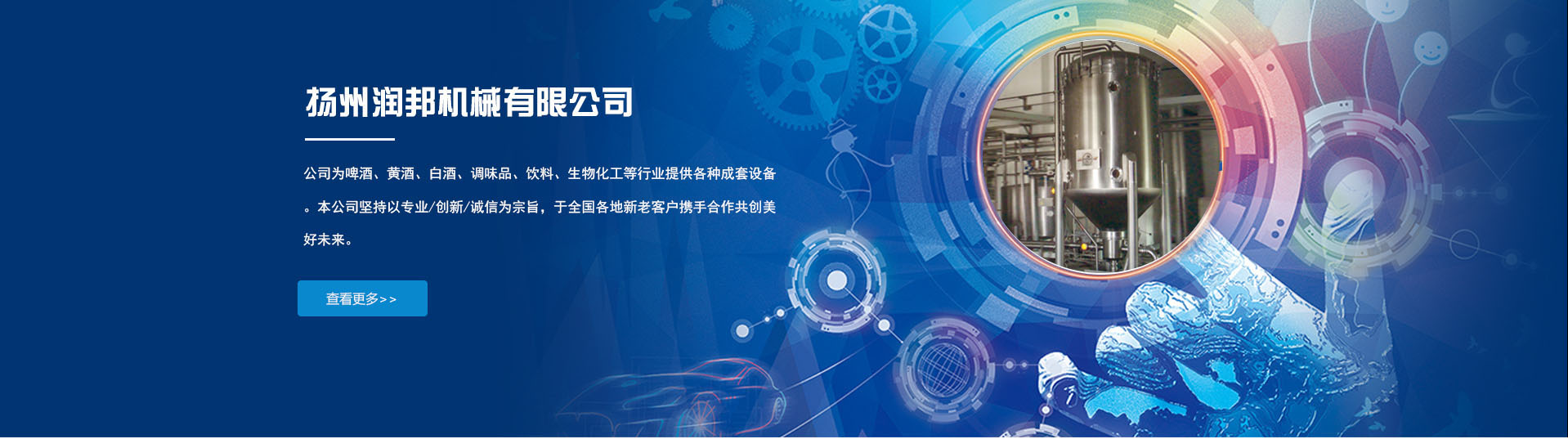 揚(yáng)州潤(rùn)邦機(jī)械有限公司是中國(guó)飲料工業(yè)協(xié)會(huì),中國(guó)酒業(yè)協(xié)會(huì),中國(guó)食品工業(yè)協(xié)會(huì)啤酒專業(yè)委員會(huì)會(huì)員單位。公司座落于風(fēng)景秀麗的揚(yáng)州北山工業(yè)園,距揚(yáng)溧高速瘦西湖出口100米處。